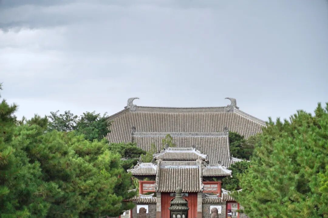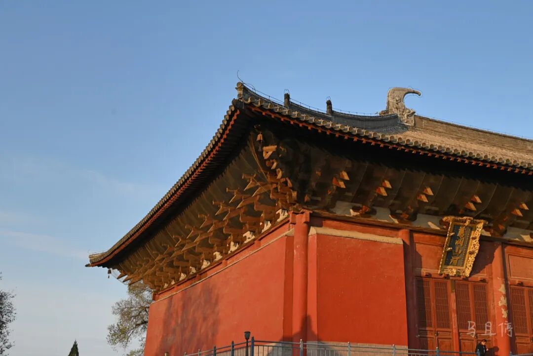 一方面因为皇家的加持,另一方面也为了展示当时辽王朝的实力,奉国寺的主殿规模及其庞大,主殿-大雄殿面阔9间进深5间,寓意九五之尊,长55米通宽33米总高24米,加之建在3 米的台基之上,让它看起来更为雄伟。