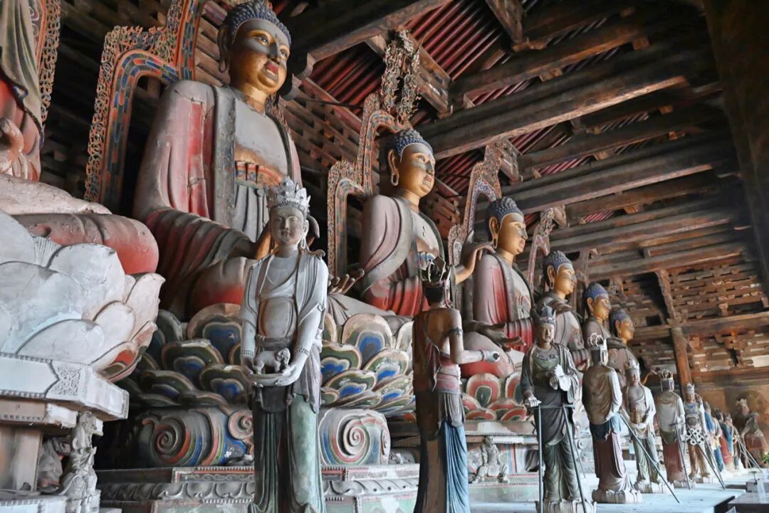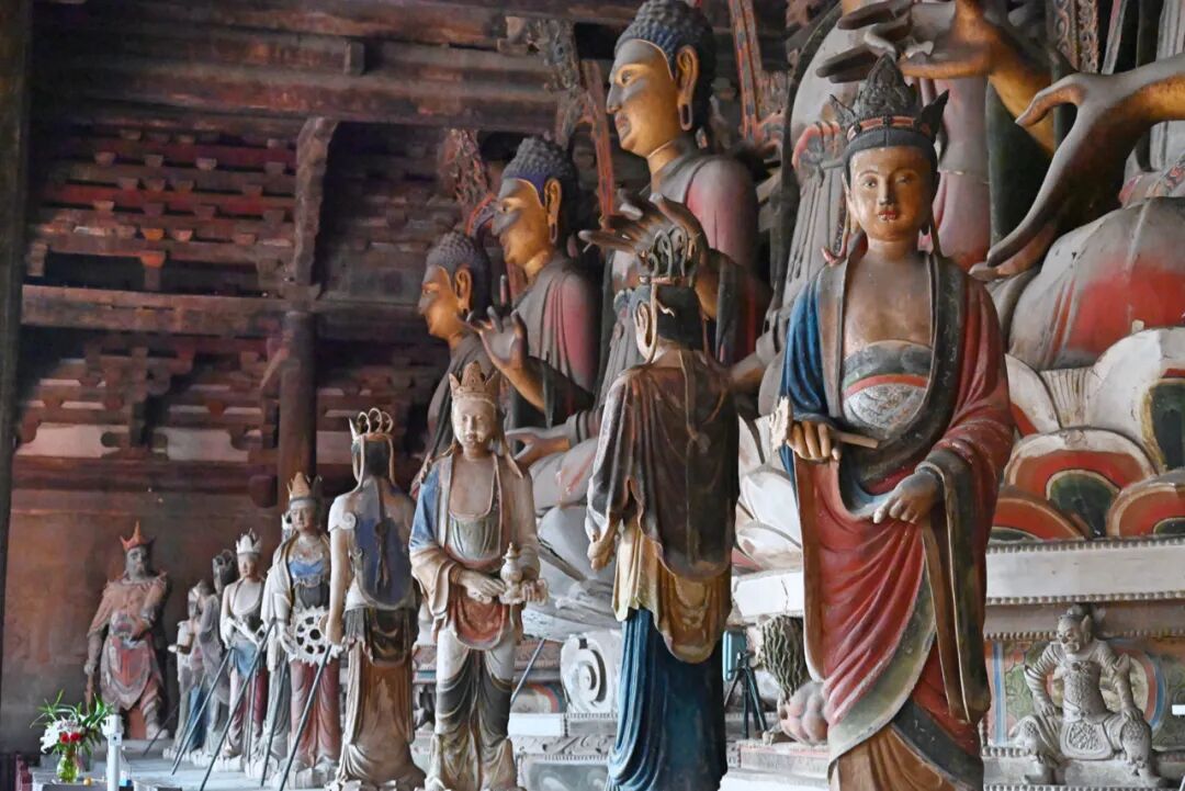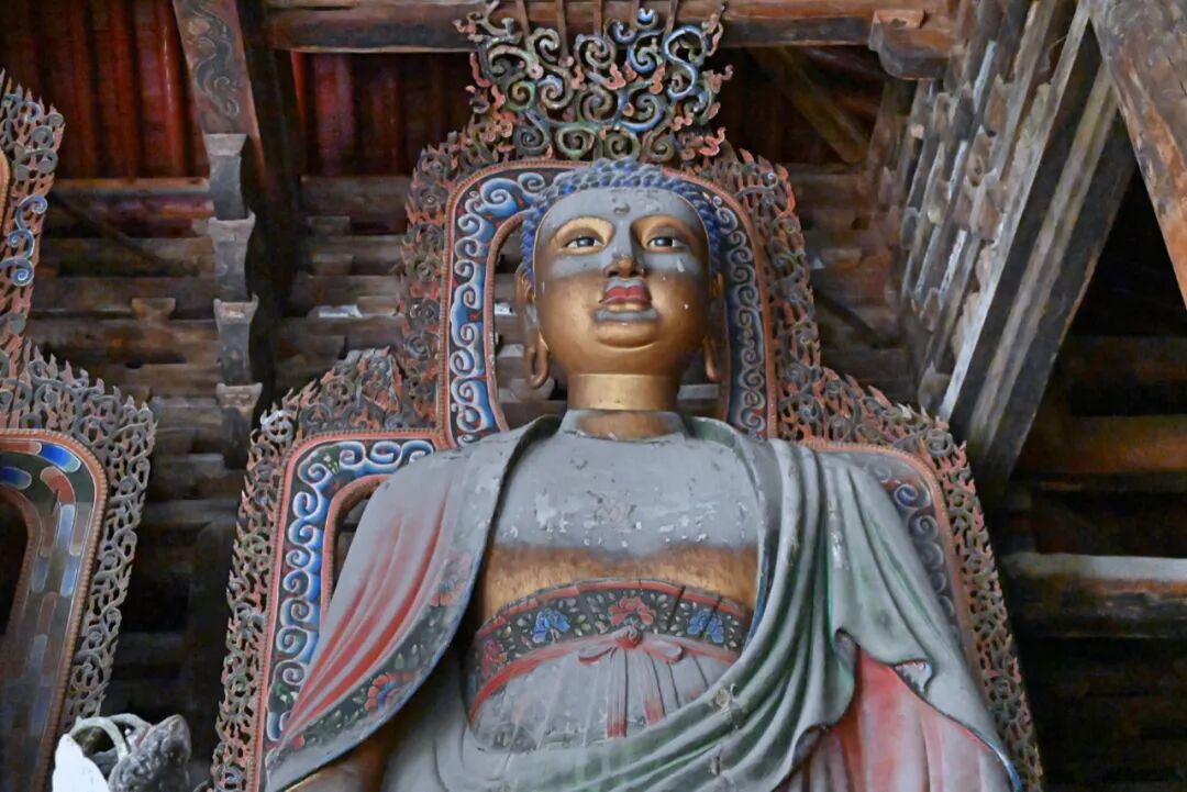 细细来看看这些辽代的彩塑,七尊大佛高6米以上,庄严又不失慈祥,继承了唐代造像风格的同时又带了几分宋塑的世俗气息,看起来多了几分平易近人的气息。