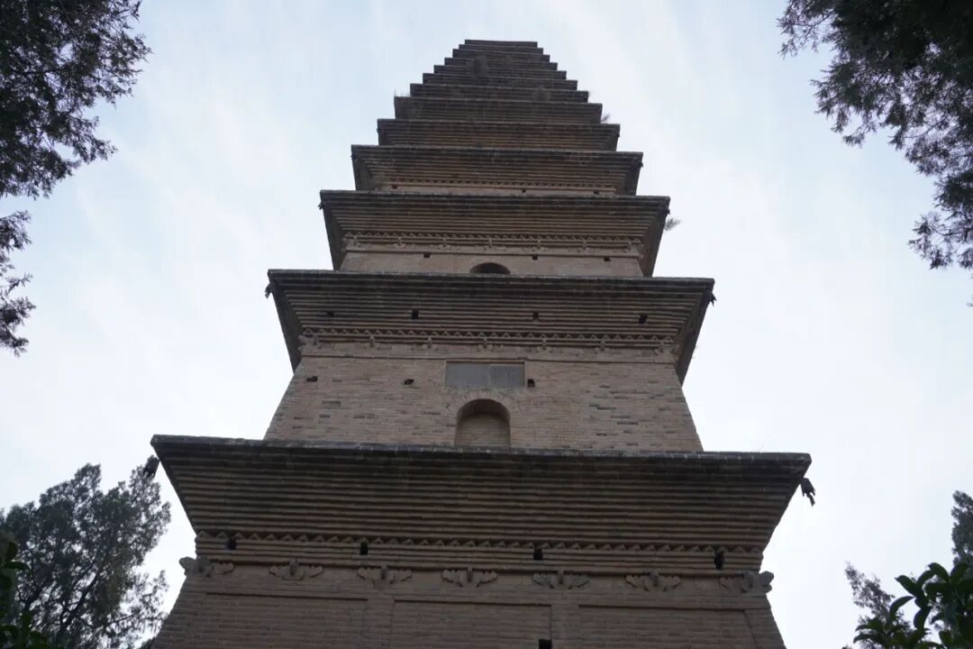 重修后的普救寺达7万平方米的规模,依山势而建寺院,重点关注西侧明代重修仿唐风格的“莺莺塔”,外观看它有点像西安的大雁塔。当然它最大的特色还是回音功能,在塔旁边敲击石头,会听到“咯哇,咯哇”的青蛙鸣叫回声,于是乎它是我国仅存的四座回音建筑。