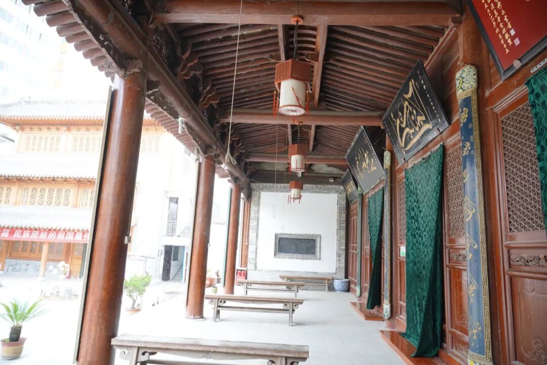 重点来关注明代洪武年间重建的清真寺大殿,同样是甘肃省为数不多的明代建筑。整座大殿由前殿、后殿以及前卷棚外廊组成的歇山顶建筑。