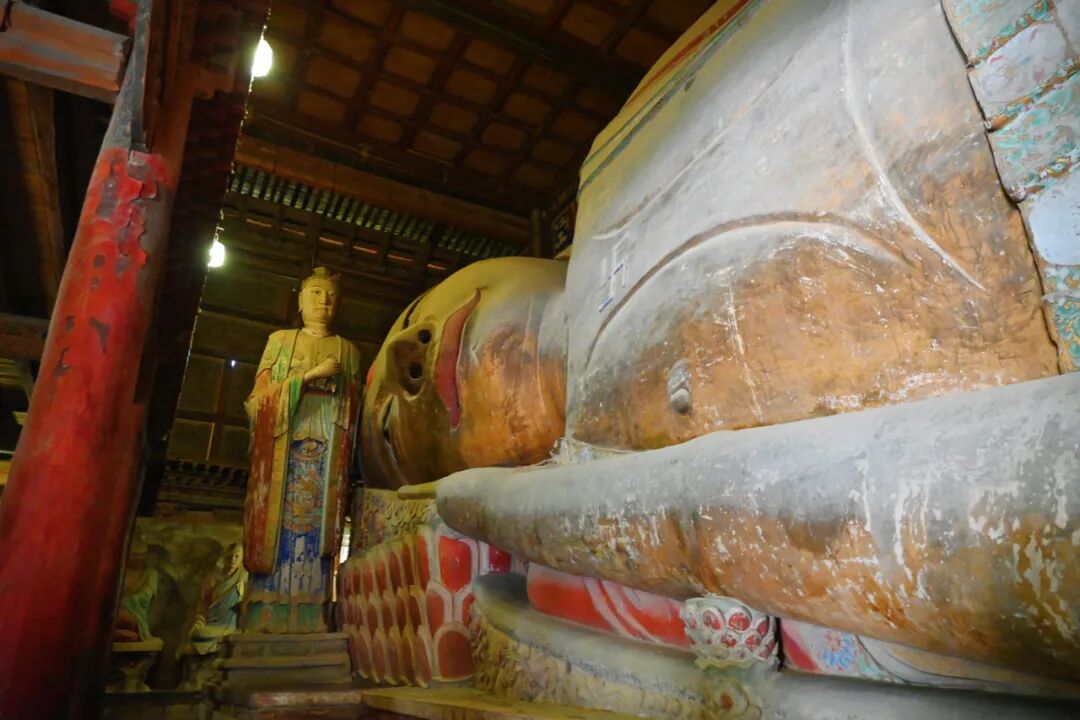 大佛寺看点不少,仅面阔九间的大佛殿,为现存最大的西夏佛教殿堂,殿堂内藏有西夏卧佛,也是最大的室内木胎泥塑卧佛;
