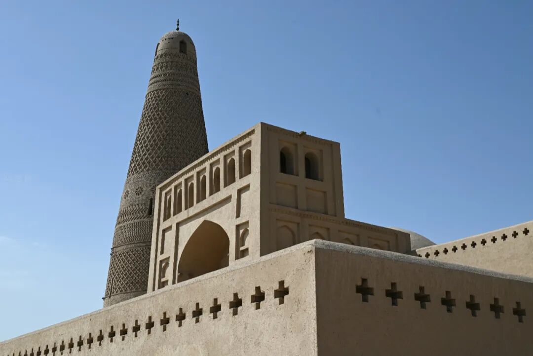 当然你也可以去看看别列入世界遗产的交河古城,相对来说这里保存得更为完好,依然可以看到色彩丰富的壁画以及较为完好的城池基座;你也可以去苏公塔看看始建于清代的极具新疆特色的清真寺和宣礼塔;