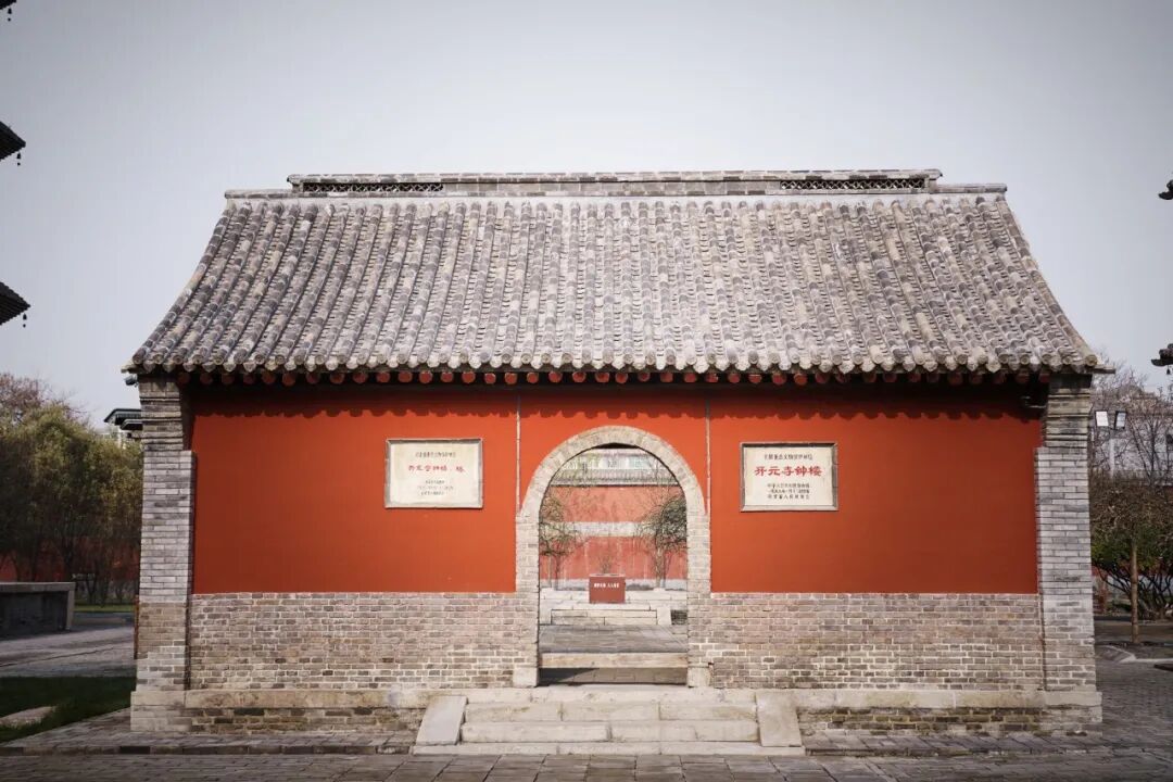 穿过三门楼后就进去到了开元寺景区最核心的区域,首先看到的就是修复后的山门,典型的红色墙和黑色的瓦看起来就很中国风,在墙壁上分别挂有河北省重点文保和全国重点文保单位的牌子。