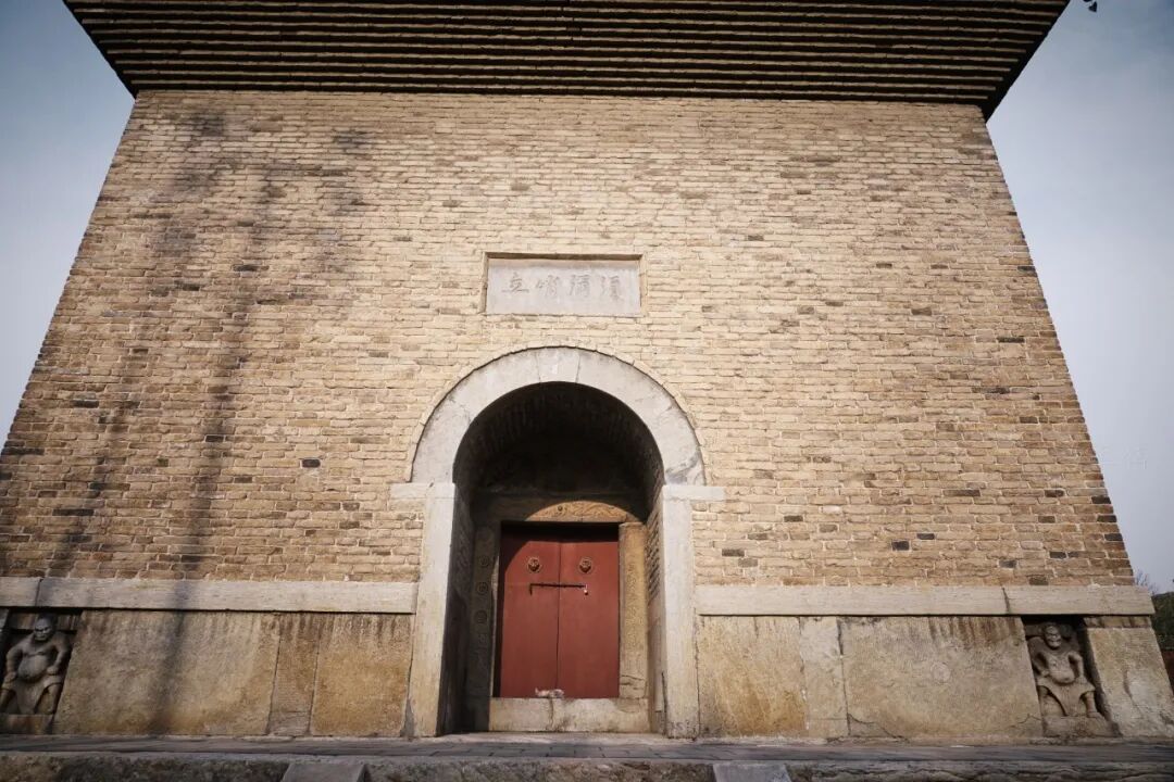 须弥塔的第一层看点不少,看点一就是正门的门框上刻有精美的浮雕,主要为花瓶、花卉图案,门循上还刻有双龙戏珠的浮雕。看点二在门楣上端镶嵌长方形石匾,可以清楚地看到为“须弥峭立”四个字,字体端正秀美。看点三就自塔身的四个边角上都刻有一尊力士像,孔武有力神情威严,看起来非常具有气势。