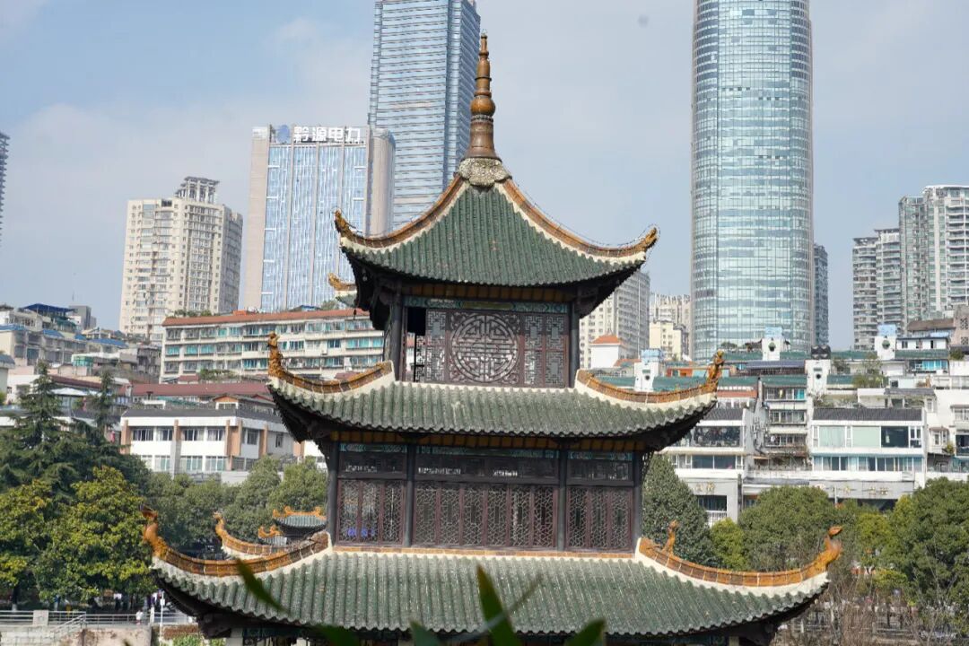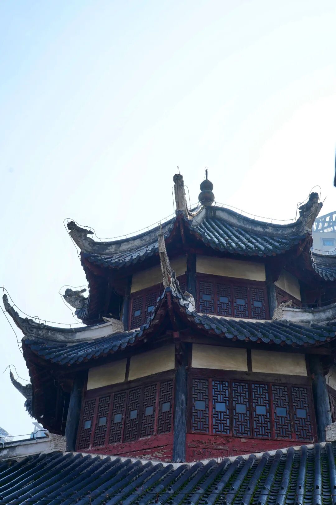 现存的贵阳文昌阁为清代康熙八年重修的遗存,看起来比翠微阁多了几分古朴气息,尤其是窗花和枋板的彩绘更让我惊喜满满,站在文昌阁上还可以一览贵阳的城市风貌。
