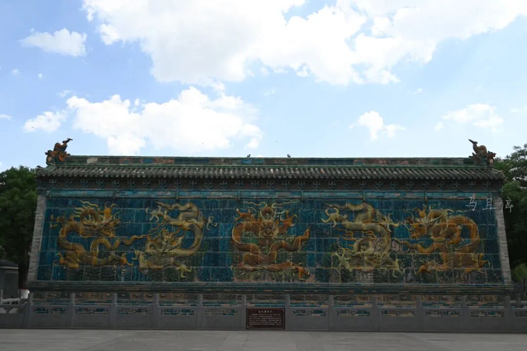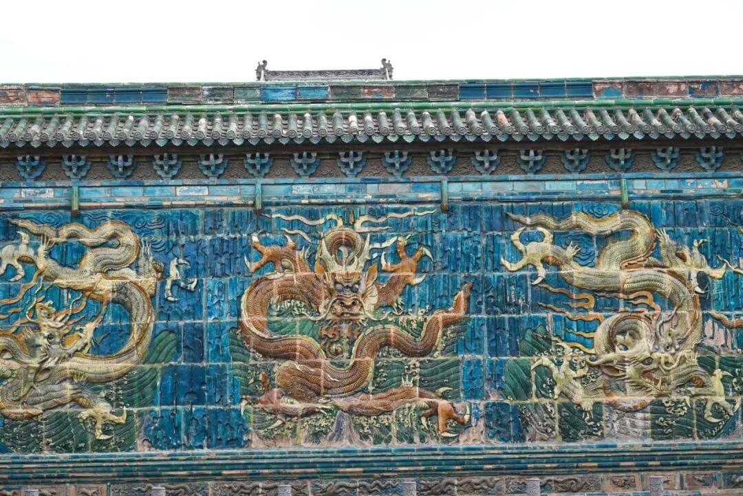 五龙璧主要分为三部分,基座,龙璧以及顶部,重点可以欣赏中间的龙璧,五条龙形态各异,张牙舞爪,生动形象地描绘出了威武的龙的形象,原本这座五龙璧并不在这里,修缮的时候迁移至此,也算是为善化寺增添了一份看点。