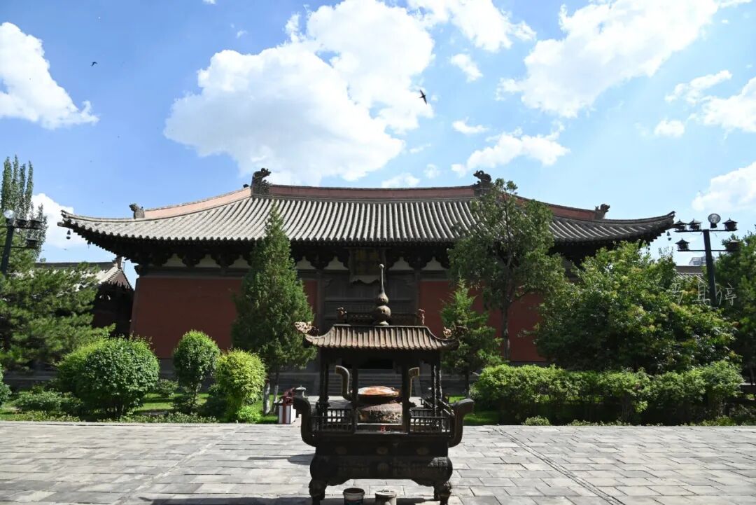 凭借着长40.7米,宽25.5米单体面积1200多平米排名全国第三,殿内的五方佛像和众多菩萨护法神造像均为辽金的原作,带着浓郁的辽代特色,南侧墙壁上尚存清代的壁画。