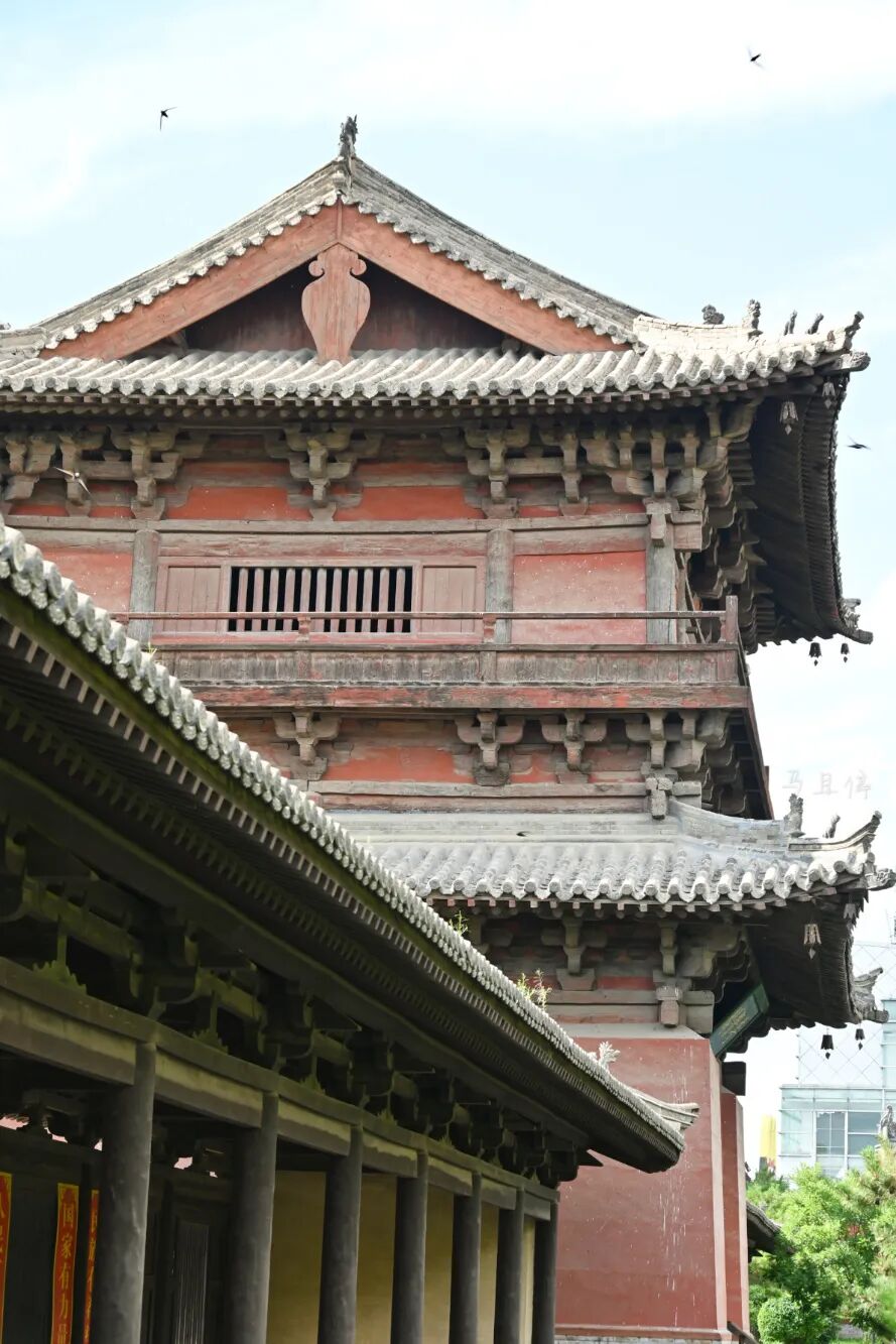 重点可以看一看西侧的普贤阁,为一座金代的遗存。普贤阁为一座楼阁式建筑,平面方形,面阔三间、进深三间,重檐九脊。