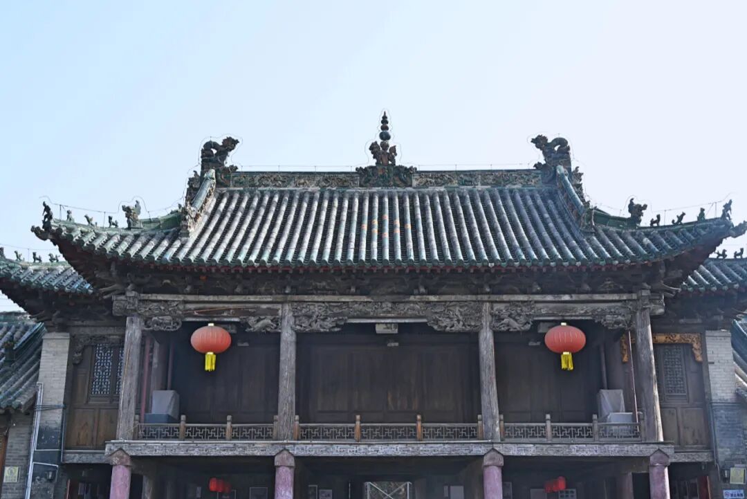除此之外还可以重点关注仿金、元建筑风格的大吻、刻有“河东夫子”四字的山门;装饰有琉璃构件的舞楼等。