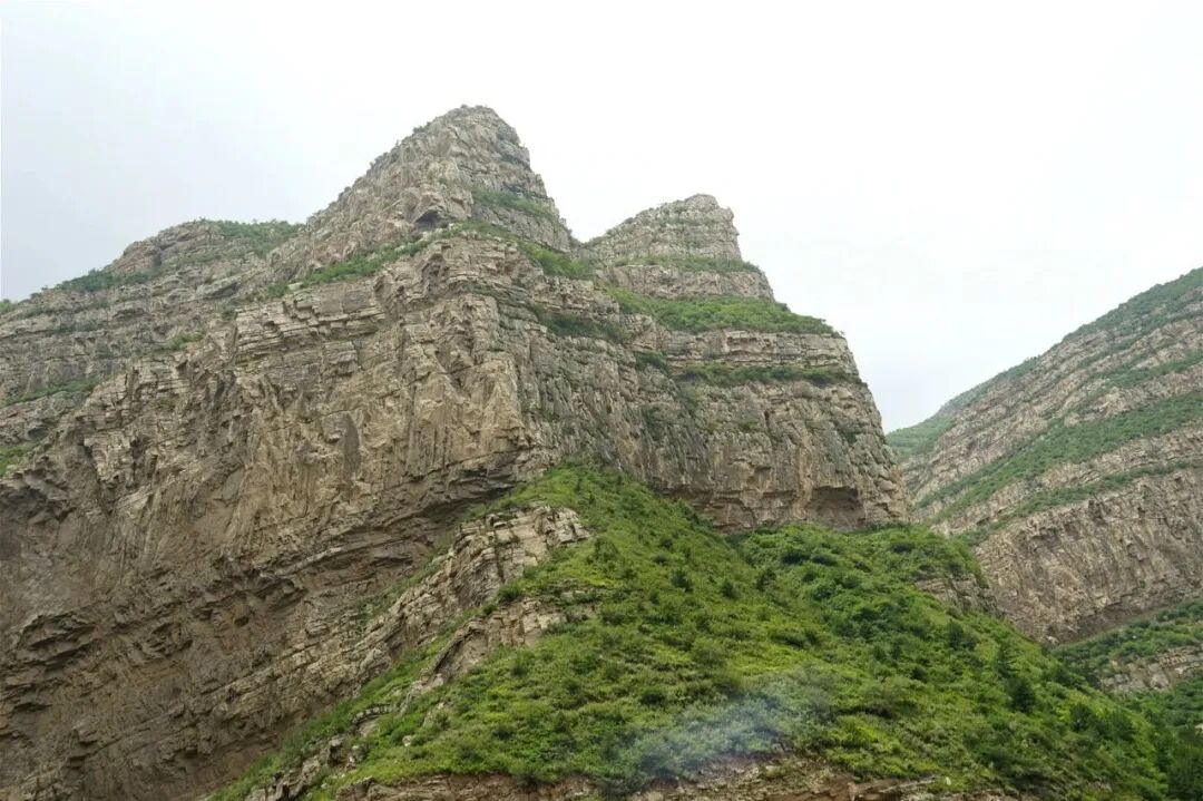 沿着石头台阶一路前行,没多久就到了虎风口,突然可以看到一个很奇怪的松树悬在道路中间,听说这是一个唐代的松树,被誉为根须外露,道骨仙风。在松树不远处就可以看到了果老岭,这里的山势看起来就格外的险峻,据了解这里曾经张果老在这里的时候,都需要下驴步行,然后手牵着驴才可以前行,而山道中深浅不一的驴蹄印或许就是最好的印证。