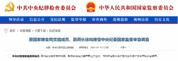 去年,中央纪委国家监委就已部署在全国范围内开展粮食购销领域腐败问题专项整治工作。