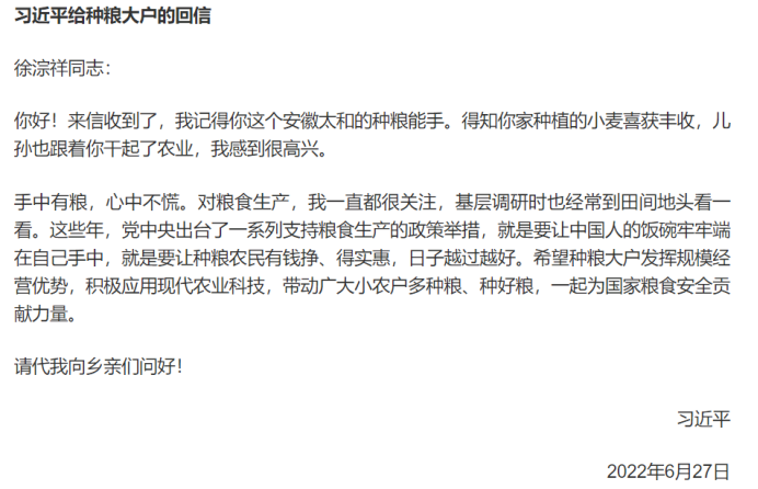 习主席说,粮食安全是“国之大者”,悠悠万事,吃饭为大。