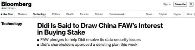 5月27日,彭博社爆出了一条消息:一汽集团考虑收购滴滴公司较大比例股权。
