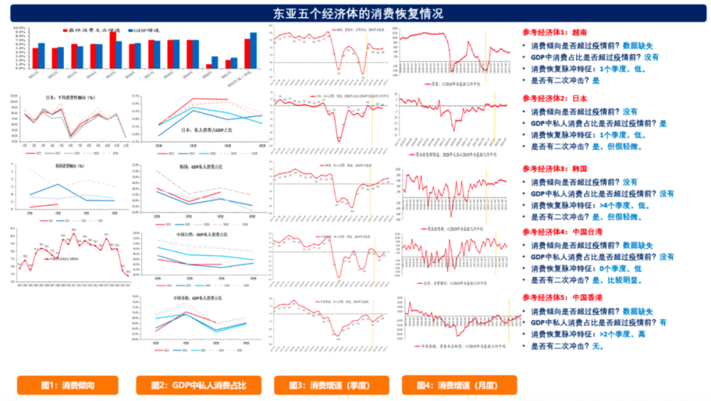 看一下和我们距离比较近的东亚5个经济体消费的恢复情况,大部分也都没恢复至疫情之前的水平。