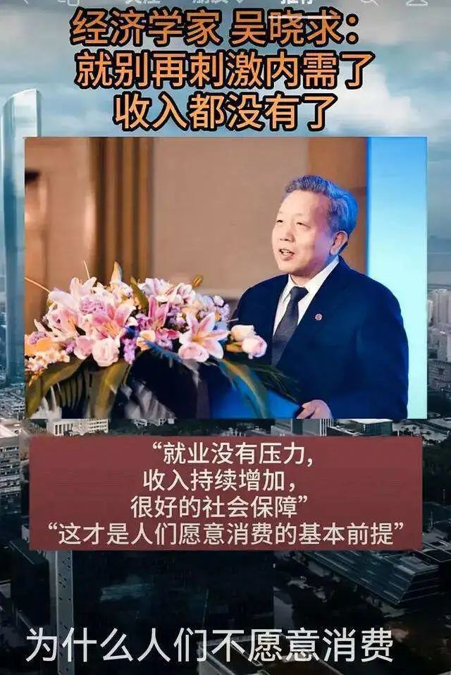 消费是由百姓的经济状况决定的,就像吴晓求说的老百姓兜比脸都干净,你叫他拿什么去消费?