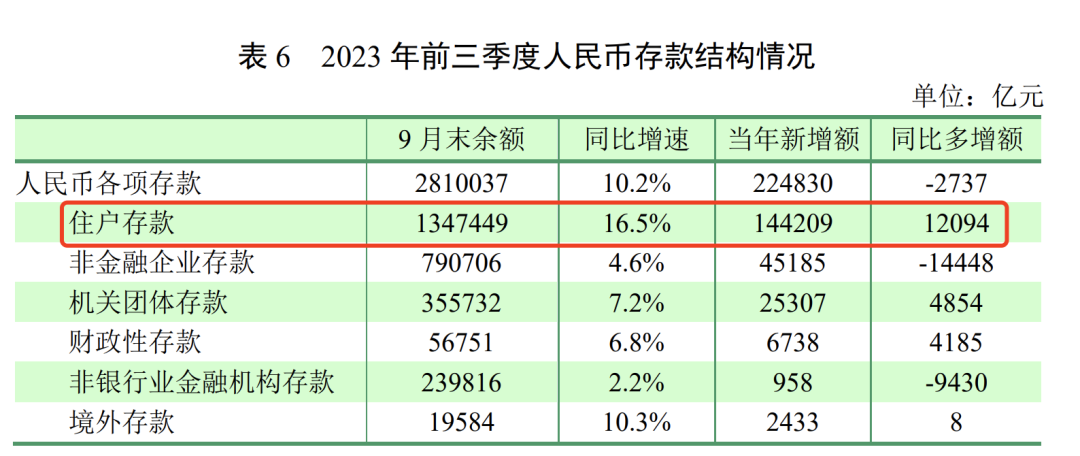 根据央行发布的三季度货币执行情况报告,今年9月末,住户存款余额达到134万亿,同比增速高达16.5%,居民存款还在“狂飙”。