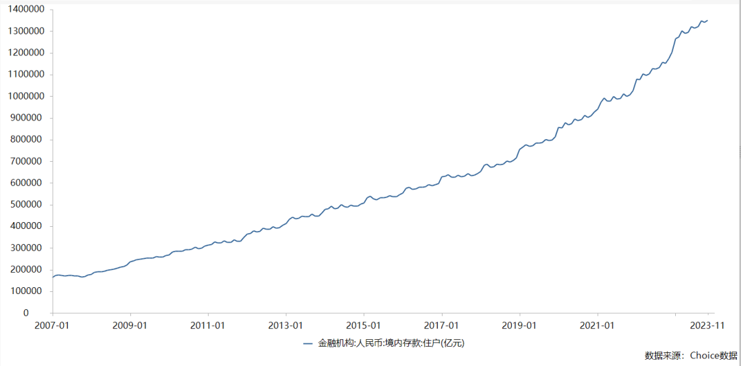 2022年,我们的住户存款出现了报复性增长,1年间狂增了17.84万亿。