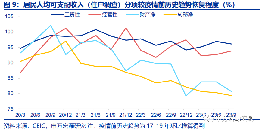 下面这张图是申万对于疫情后我们居民工资、财产净收入、转移净收入、和经营性收入的一个推算。