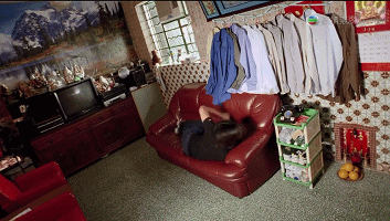 最后他生气地拔掉了电话,然后蜷缩在了沙发上。