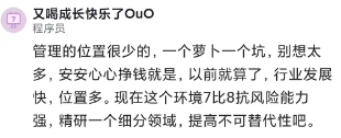 提前给自己找好出路,业务不好做的时候,成本高且年龄大的人很容易被优化,别对企业抱有幻想。未来薪酬怎么样?要么转向新赛道,要么接受降薪,市场竞争很激烈,看自己优势什么?