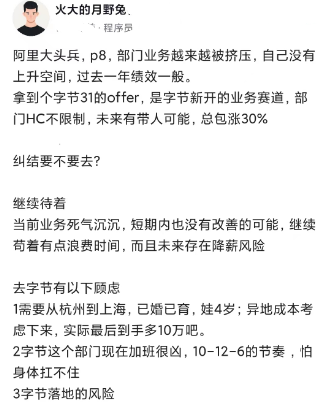 阿里P8感觉到没发展,可能还会降薪,想去字节搏一搏,大家觉得有必要吗?一起来探讨下。