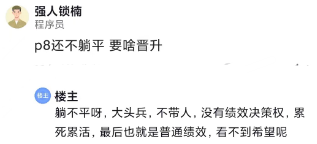 大公司是很难躺平的,真要容易待着,谁会想出路呢?一个地方得不到成长,换个地方是有利的,在哪里都不存在稳定,重要的是能长见识,熟悉项目的操盘过程,观察不同公司的优劣,能力提升了,一样利于跳槽。