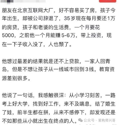 京东有位程序员,说自己在京东的时候是年薪40万,现在去了一家国企,现在薪酬是25万,不过状态变了,现在没有绩效压力,工作时间是965,感谢被裁,看表情乐开了花。能够发出这样的感慨,说明经历过社会的毒打,知道什么样的工作好,国企并不是不好,要去对国企才好。