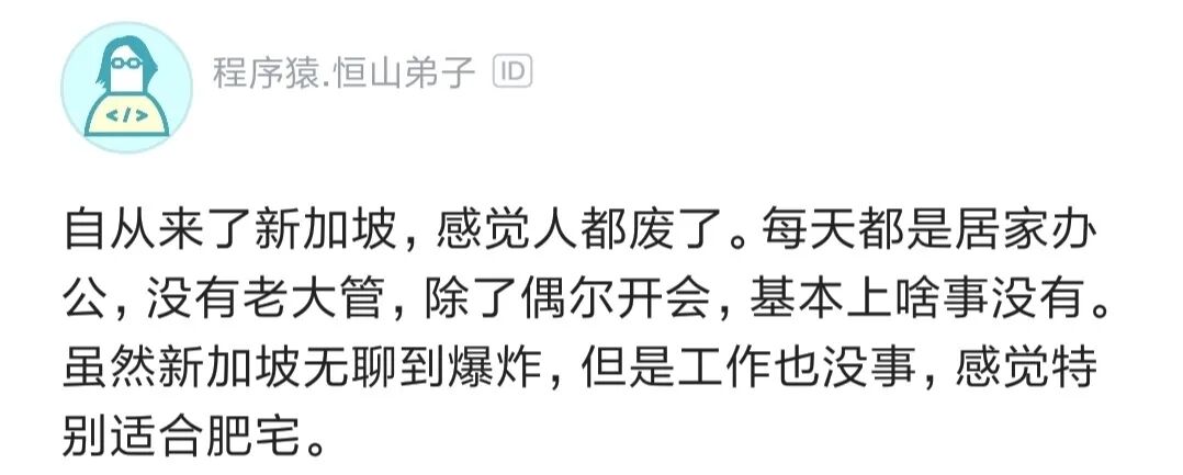 别看羡慕人家这个状态,在国内的外企很多也是如此,现在去坡县国内过去的人很多,也就是你去找的工作,如果不避开国内的人,基本就是换了一个地方卷,去的外企和本土企业另说。
