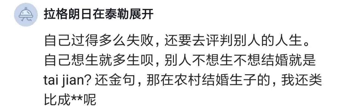 有些人是很传统的,觉得一定要结婚和生孩子,这在过去是大逆不道,但对现在来看,其实没什么大不了。小地方人会被局限,但是在大城市是能接受的,没有必要和这个词了,一切就看个人的意愿如何。