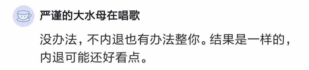 肯定不是一个人这样,也不是一个企业这样,而是很多企业都会这么操作。确实能给内退很好了,只是每个人的经济情况不同,对于内退感受就不同。条件好的,巴不得如此,条件不好的,对钱是很在意的,突然少了几千,不难受才怪。