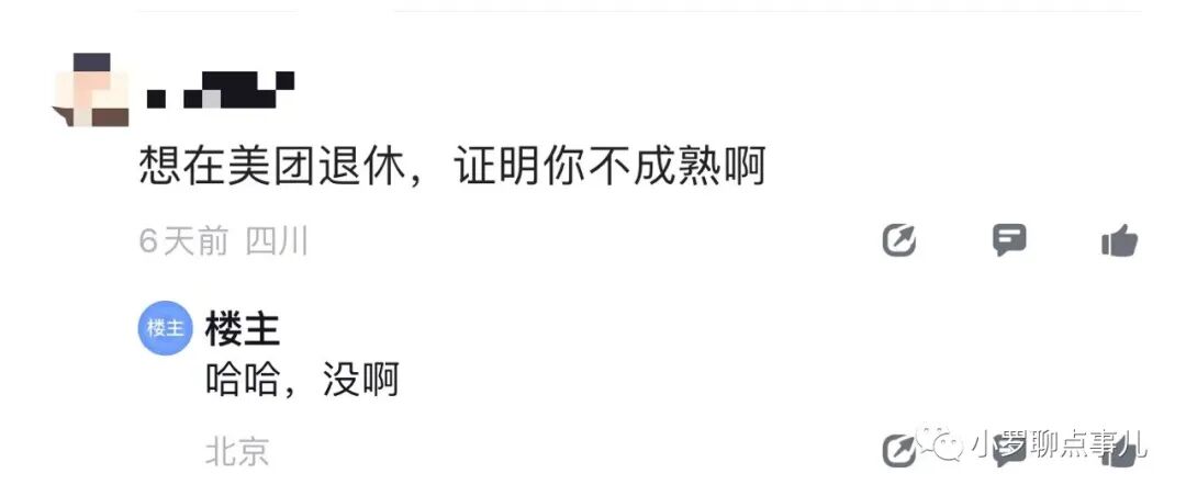 当然,也有网友调侃,“想在美团退休,说明不够成熟啊。”