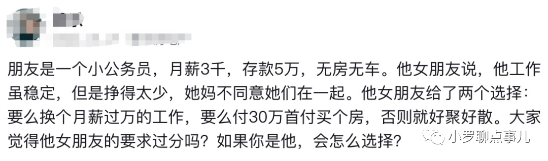 这位公务员月薪三千,积蓄五万,他和女友的感情本是甜蜜的糖,却在谈婚论嫁时,遭遇了现实的苦涩。女方家长的要求直截了当:月薪破万或三十万房首付,否则,这段感情,就此画上句号。