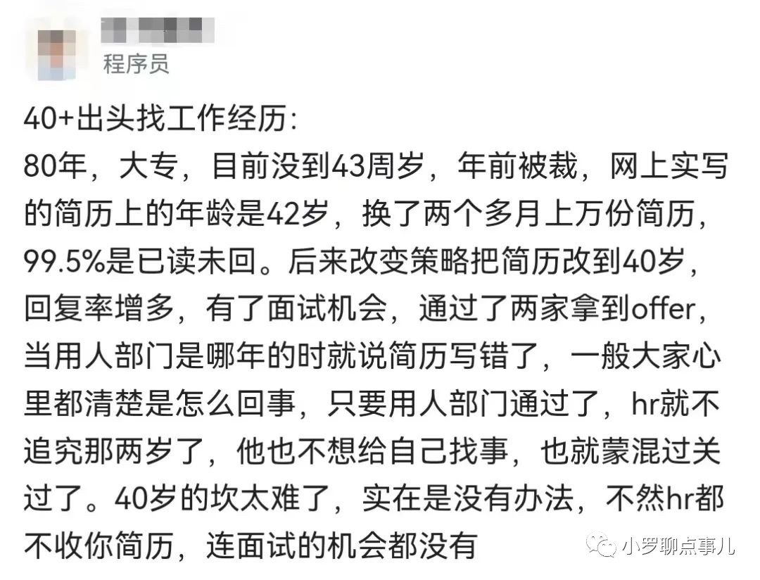 然而,我想说的是,对于一个43岁的求职者来说,如果不采用这种策略,他甚至可能连简历筛选这一关都无法通过,更别提得到面试机会或工作机会了。