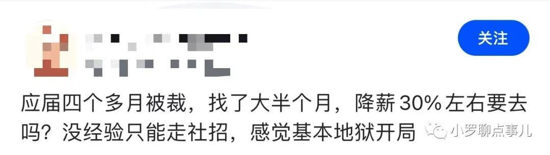 就像下面这位网友,应届被裁员,新的工作需要降薪 30%,简直就是地狱开局。