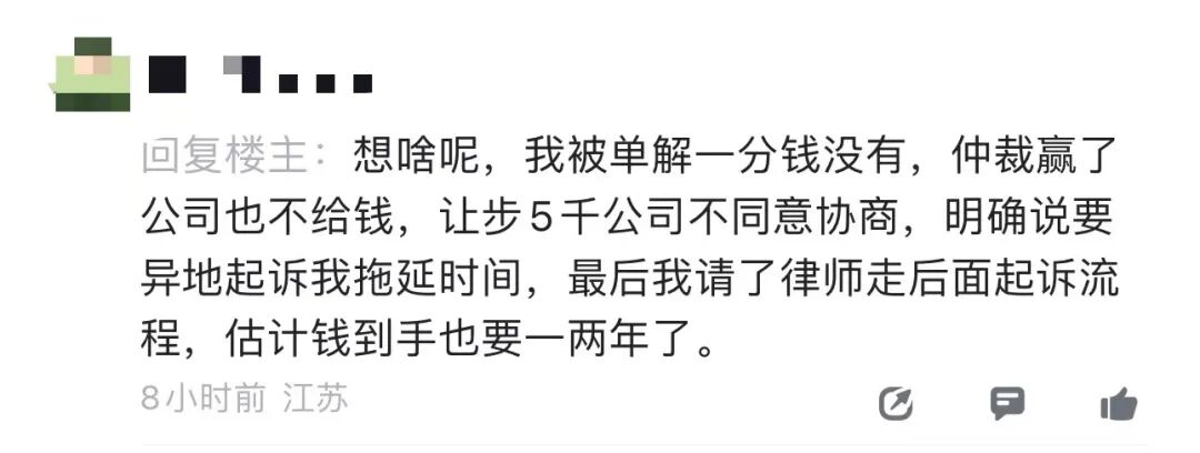 也有网友回复说,自己被单解了但是一分钱都没有,且仲裁赢了公司也不给钱。