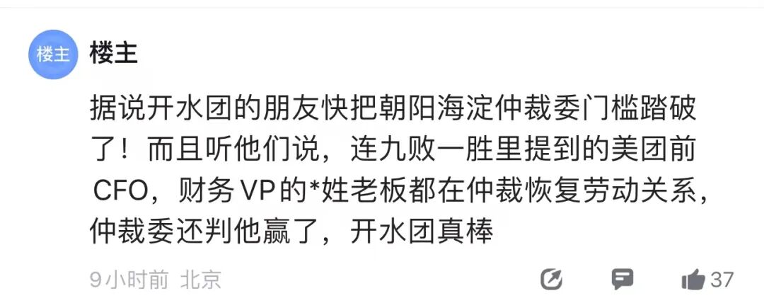 该网友还爆料,开水团的朋友快把朝阳海淀仲裁委门槛踏破了!