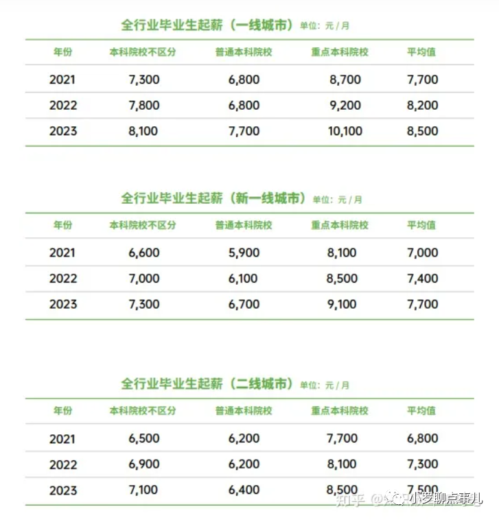 一线城市的毕业生起薪平均值也才 8500 元,新一线为 7700 元,二线则 7500。不难想象,三四线城市的起薪为多少。