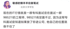 但最近,一位北大学生的言论引发了热议——他指出,在面试过程中,一些985、211的毕业生对学历较低的面试官抱有明显的不满和歧视态度,认为这些面试官不配对他们进行评判。