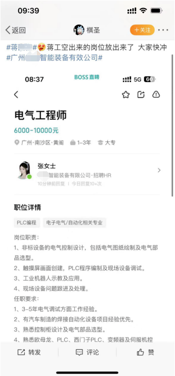 这不,网友们已经把您公司的招聘公告贴出来了,想必也是给您公司做了宣传的工作,帮您家HR扩散转发了~