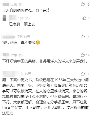 最后,不妨再围观下李总夫人的争议性观点,我也是无力吐槽了: