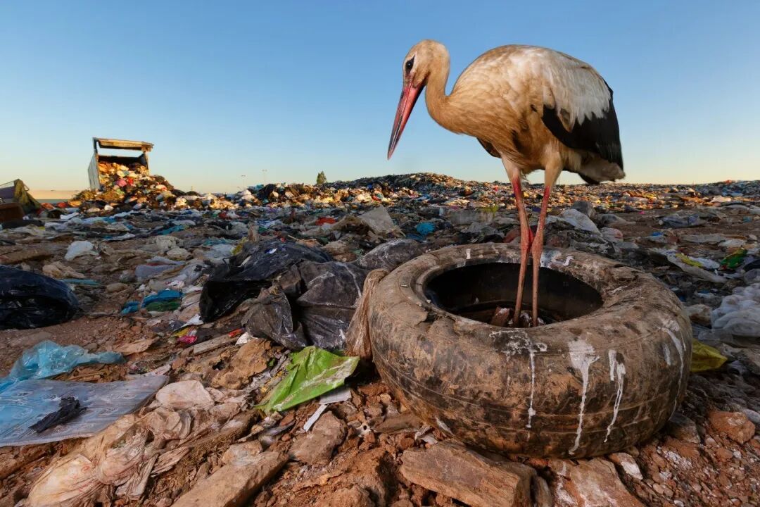 2012年,在西班牙安达卢西亚地区,垃圾场正在成为白鹳 (Ciconia Ciconia)的食物来源地。它们不再以传统的青蛙、昆虫、幼鸟、啮齿动物和蠕虫为食,而是被垃圾场内现成的腐烂食物所吸引,这会让白鹳摄入致命的元素。