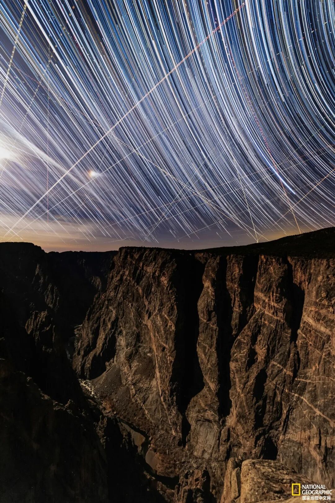 在加利福尼亚州石峰国家公园的一个夜晚,当人造卫星“车队”浩浩荡荡穿过天空,它们排列整齐,仿佛完美间隔的星星,但这实际上是一种光污染。