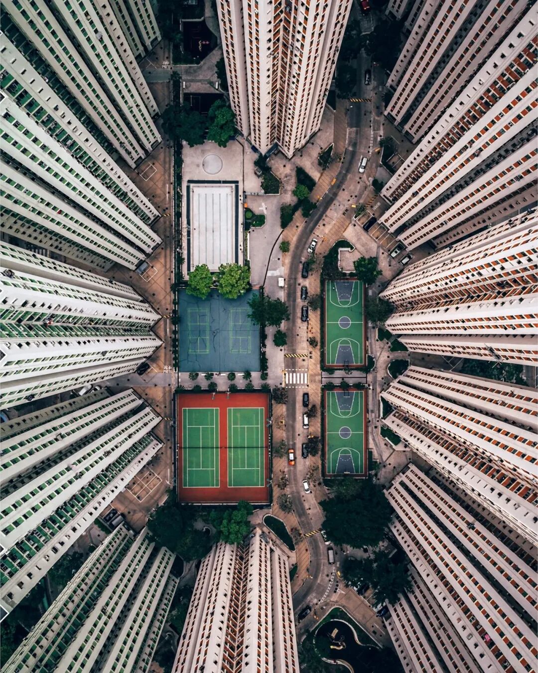 作为一名无人机摄影师,康明斯探索了这座城市,图片是他在九龙湾附近的丽晶花园住宅区航拍得到的。