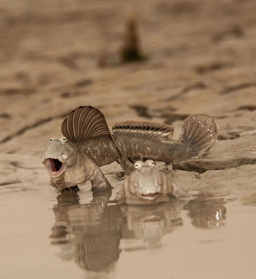 国家地理摄影师托马斯·P·佩沙克(Thomas P. Peschak)花了好几个小时,一动不动地躺在滩涂泥里,记录下这张弹涂鱼的求偶仪式照片。