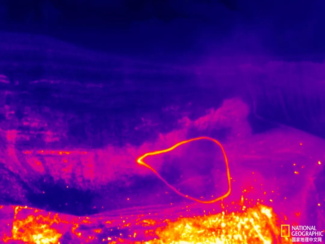 这是一张奥兰克大学(the University of Auckland)的博士生本杰明·西蒙斯(Benjamin Simons)使用红外相机在伊苏尔火山(Yasur volcano)拍摄到的照片,此时平静的火山口正在吐出一个烟圈。