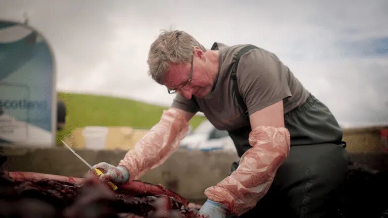 2019年,苏格兰(Scotland)海滩上发现了一头年仅10岁的抹香鲸(Sperm whale)尸体,苏格兰海洋动物搁浅计划(Scottish Marine Animal Stranding Scheme)团队拍下了这张照片。