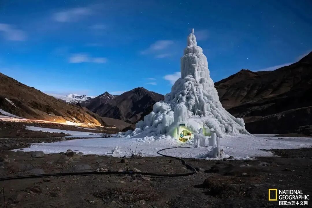 从那时起,旺楚克就教拉达克周围的村民建造冰塔。2020年,他们建造了26座,其中9座高达100英尺(30.48 米)。