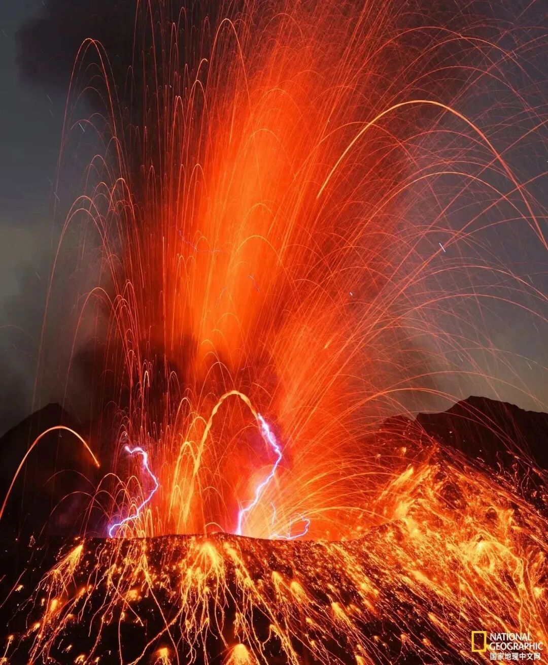 2013年9月,位于日本南部的樱岛火山异常活跃,熔岩喷出数百英尺高。灰烬中的静电荷引发了闪电,噼啪作响。摄影师汤姆·菲佛(Tom Pfeiffer)捕捉到了这一幕。