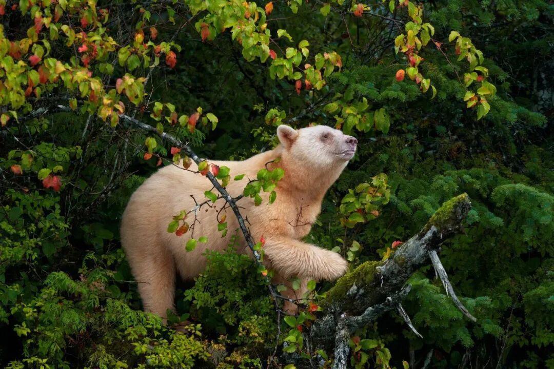 灵熊(也称为 Kermode 熊)既不是白化熊也不是北极熊,是北美黑熊的白色变种,几乎只在大熊雨林中发现。