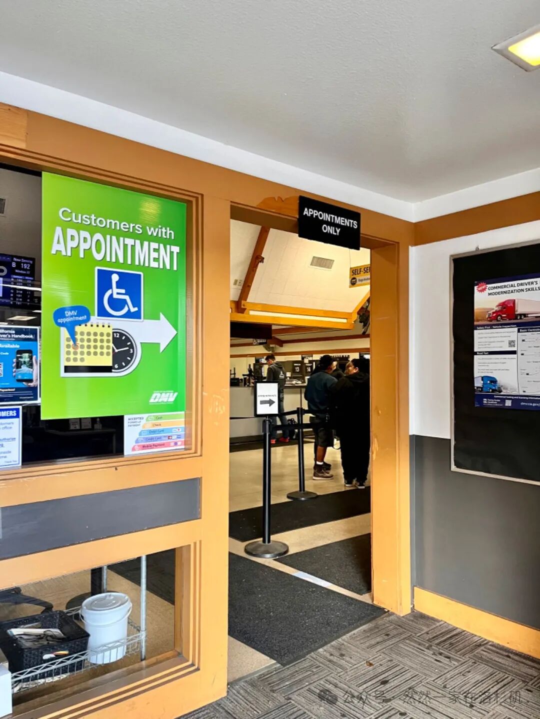社死场景一:我不想插队,我只是有个问题。DMV中文版本的驾驶手册被取完了。我本着来都来了不能空手而归的态度,想找工作人员问问。于是,直接冲进去对着背对大门办公的工作人员叽里呱啦。招来所有预约和未预约的人齐刷刷的盯着我,我才意识到这里不是咨询台。谁能想到坐门口的不是前台呢?去第二次的时候才发现,门外有一位办事人员负责解答疑问,当时刚好不在。